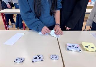 In addition, using a PowerPoint presentation, Mr. Xu taught some students how to create panda paper-foldings and paper-cuttings. They eventually expressed great delight and satisfaction with their handcrafted creations.
