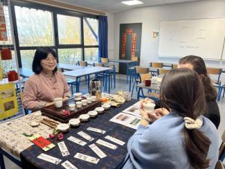 Mme Qiu Shuzhen a présenté la cérémonie chinoise du thé et a expliqué les connaissances liées à la cérémonie du thé. Mme Qiu a dressé à l'avance une table de thé de style chinois et a interagi avec les parents et les élèves, les aidant à découvrir les six principaux types de thé en Chine et les origines du thé par le biais d'une séance amusante de questions-réponses pendant la dégustation du thé. Parallèlement, pendant la cérémonie du thé, Mme Qiu a encouragé les élèves à s'inscrire au programme d'apprentissage du chinois afin de pouvoir se rendre en Chine en personne pour déguster du thé à l'avenir.
