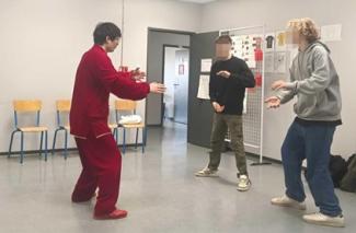 M. Xu Meng était chargé de faire des démonstrations de Taijiquan et d'expliquer les connaissances liées au Taiji. Avec la chanson « The Wild Geese » comme musique de fond, M. Xu a montré tour à tour aux enseignants, aux élèves et aux parents les dix-huit mouvements essentiels du Taijiquan de style Chen, entrecoupés de courtes présentations sur les connaissances théoriques du Taijiquan et sur les caractéristiques et les avantages du Taijiquan, tout en échangeant des points de vue et en répondant à des questions. En outre, M. Xu a invité de temps à autre certains étudiants à faire l'expérience du taijiquan et à apprendre quelques mouvements classiques. Pendant le processus, il a utilisé les mots chinois « un, deux, trois, quatre ...... » pour donner des instructions, invitant les participants à suivre et à ressentir les caractéristiques de la prononciation chinoise.