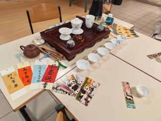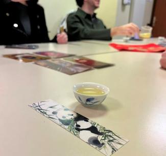 À l'approche du Nouvel An chinois, Mme Qiu Shuzhen a organisé une cérémonie du thé sur le thème du Festival du Printemps, intégrant des éléments festifs tels que des calligraphies du caractère « 福 » (qui signifie « bonne fortune ») et des formules de vœux. La cérémonie du thé s'est déroulée en deux parties principales : une introduction aux fondamentaux de la culture chinoise du thé et une dégustation de thés chinois. À l'aide d'une présentation PowerPoint soigneusement préparée, Mme Qiu a commencé par expliquer l’origine du caractère chinois signifiant « thé » et ses traductions dans d'autres langues. Elle a ensuite présenté de manière concise le thé, en abordant sa diffusion, ses classifications, son utilisation dans la vie quotidienne et dans la vie spirituelle. Tout au long de la séance, Mme Qiu a intégré des sessions de questions-réponses captivantes afin de maintenir des interaction et a offert à tous les élèves avec un marque-page panda.