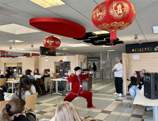 本次开放日设置了多个中华文化表演与体验环节。中午12时至13时,在学校食堂两个就餐高峰时段,徐萌老师伴随《鸿雁》音乐,为前来就餐的师生连续表演两场陈式太极拳精要十八式,赢得现场师生及食堂工作人员的阵阵掌声。该校学习汉语的学生还演唱了中文歌曲,并表演了汉语走秀和舞狮节目,同样获得观众热烈欢迎。