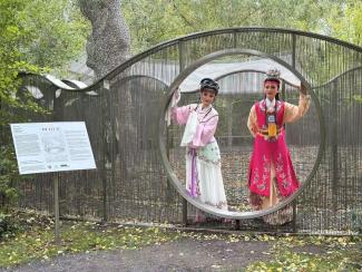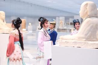 演出开始前,红楼梦剧组演员抓紧时间带妆参观朗斯卢浮宫的“时间长廊”,两种文化跨越历史和地理相遇朗斯卢浮宫和由南京大学、阿尔多瓦大学和朗斯卢浮宫合作创建的“中国花园”。两位越剧团演员在花园的“草堂”前唱了《天上掉下个林妹妹》。中国传统表演艺术和中国传统建筑艺术如此精妙回应。